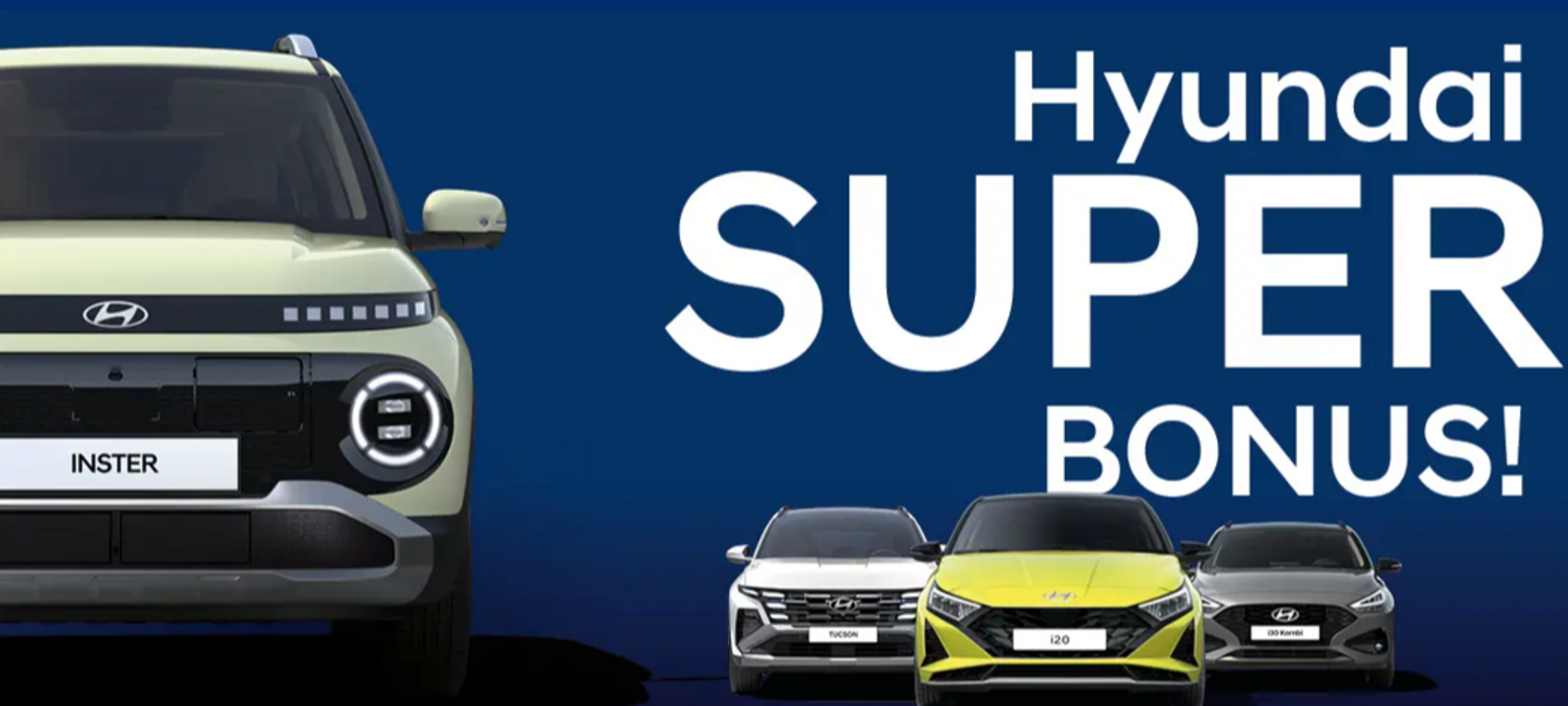 *Aktion/Preise (inkl. Hersteller- & Händlerbeteiligung) gültig für Neuwagenkaufverträge bis 31.03.2026 inkl. Zulassung bis 30.06.2026 bzw. solange der Vorrat reicht. Angebot gültig für Privat- und Firmenkunden. Aktion/Preise beinhalten modellabhängig bis zu € 6.500,- Hyundai Superbonus bestehend aus bis zu € 3.200,- Finanzierungsbonus, € 800,- Versicherungsbonus und bis zu € 2.500,- Hyundai Eintauschbonus. Finanzierungsbonus gültig bei Abschluss einer Leasingfinanzierung
